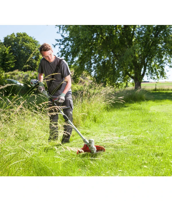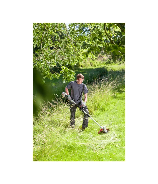 Dadurch, dass der AL-KO Sense Aufsatz fürs Multitool BCA 4030 mit einem Akku betrieben wird, ist die Handhabung ganz einfach. So brauchen Sie beim Mähen nicht auf das Kabel zu achten und sind frei in Ihren Bewegungen. Darüber hinaus tun Sie etwas Gutes für Ihre Gesundheit, indem Sie mit diesem Modell das Einatmen giftiger Abgase vermeiden. Aufgrund der langen Akku-Laufzeit können Sie 30 bis 40 Minuten am Stück arbeiten. Erst dann muss der separat erhältliche Akku wieder aufgeladen werden. Selbstverständlich ermöglicht Ihnen ein Zweit- oder Dritt-Akku das kontinuierliche Bearbeiten Ihrer Grünfläche über einen längeren Zeitraum. Bestellen Sie zum Sense Aufsatz fürs Multitool BCA 4030 von AL-KO den passenden Akku gleich mit!