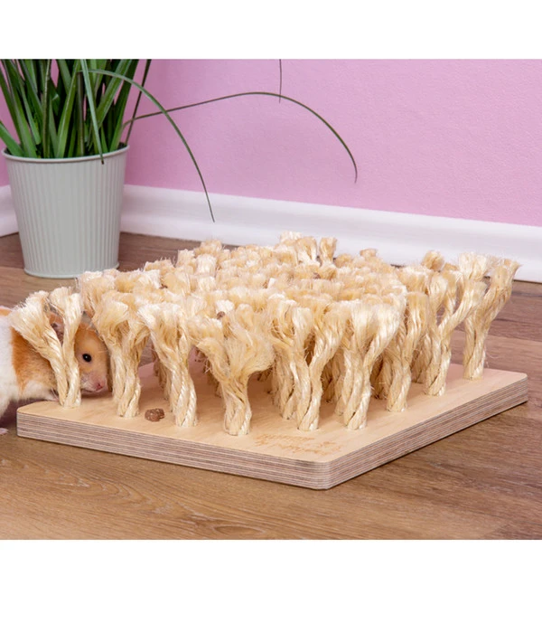 Sie suchen nach einem neuen Spielabenteuer für Ihre kleinsten Freunde wie Kaninchen, Nager und Co.? Dann ist das bunny® NATURE by puppijames Nagerspielzeug Schnüffelbrett genau das Richtige für Sie! Mit dem Schnüffelbrett lassen Sie Ihre Fellnasen mit großem Spaßfaktor spielerisch auf Leckerliesuche gehen. Sie verstecken einfach die Lieblingsleckerli der Kleinen in den Sisal-Seilen und schon geht die Suche los – der Hauptgewinn ist hierbei sicher! Sie lehnen sich entspannt zurück und genießen das possierliche Schauspiel.