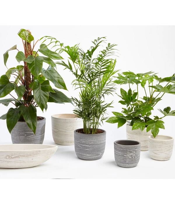 Die Jardiniere im Holzlook bietet unterschiedliche Einsatzmöglichkeiten und eignet sich aufgrund ihres modernen Designs und ihrer außergewöhnlichen Form als Pflanzschale sowie als Dekorationsobjekt. Die dezente Farbwahl passt sich allen Pflanzen und Blütenfarben optimal an. Zu der Jardiniere passend gibt es Übertöpfe in unterschiedlichen Größen. Ein Ensemble von Schalen und Töpfen in Holzoptik hinterlässt im Gesamtbild einen stilvollen Eindruck und verschönert Ihre Wohnung geschmackvoll.
