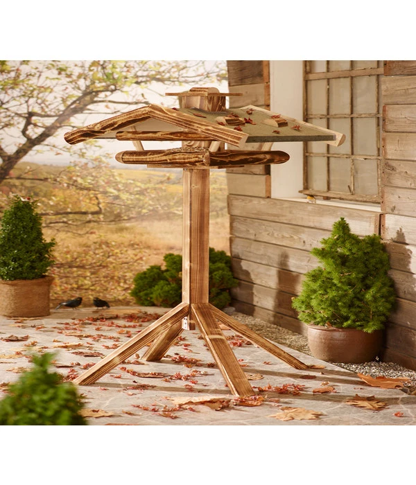 Sie möchten sich ein Vogelhaus für Ihren Garten oder Ihre Terrasse zulegen? Dann ist das geflammte Dehner Natura Vogelhaus & Ständer Watzmann genau das Richtige für Sie! Hier bekommen Sie ein wetterbeständiges Futterhaus inkl. einem stabilem Ständer aus geflammten Fichtenholz. Das prächtige, in Niederbayern handgefertigte Dehner Natura Vogelhaus Watzmann ist bestens verarbeitet und verfügt über ein mit wasserabweisender Teerpappe bespanntes, ausladendes Dach und fachmännisch verkittete Ränder. Das Vogelfutter können Sie ganz einfach über den abnehmbaren Deckel auf dem „Schornstein“ einfüllen. Von allen vier Seiten lässt sich das Dehner Natura Vogelhaus anfliegen und Krähenvögel haben hier keine Chance den kleineren Vögeln das Futter zu stehlen. Um die Bodenplatte und somit das Futter der Vögel einfach sauber zu halten, ist bei diesem großen Vogelhaus eine der seitlichen Holzleisten abklappbar. Mit diesem massiven und hübschen Futterhaus von Dehner Natura bieten Sie Ihren gefiederten Freunden einen sicheren Rast- und Futterplatz.