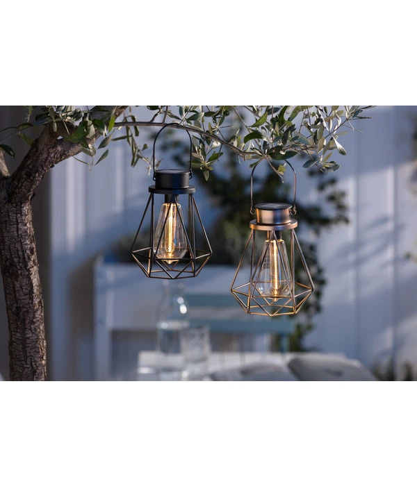 Das ist Stimmung pur: warmes Licht aus der Retro-Lampe – der zauberhaften Dehner Solar-Drahtglühbirne Blackora!