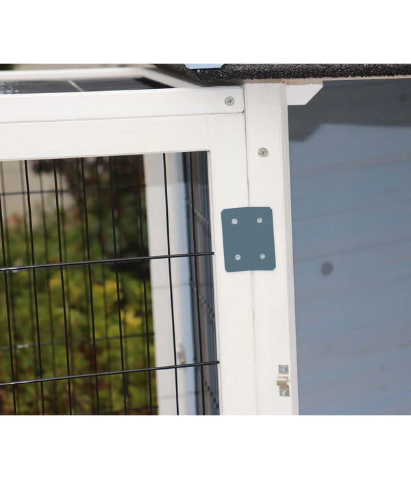 Passend zu dem Dehner Vogelgehege Santorini gibt’s eine hübsche Voliere, die im Stil und der Farbgebung perfekt auf das Gehege abgestimmt ist. Da die Voliere ein mit Bitumen gedecktes Dach hat, sind Ihre gefiederten Freunde in der Voliere auch bei einem Regenschauer geschützt. Sie können zu der Voliere sogar gleich zwei Dehner Vogelgehege Santorini kombinieren, um Ihrer fröhlichen Vogelschar noch mehr Freiraum zu bieten.