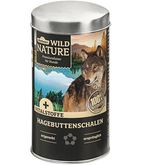 Hagebutten zählen zu den Früchten mit dem höchsten Vitamin C-Gehalt überhaupt. Und dabei ist dieser wundersame Vitalstoff ein wahres „Alleskönner“-Vitamin. Diese Vorzüge machen sich auch die hochwertigen Dehner Wild Nature Hagebuttenschalen zunutze. Denn dieses rein natürliche Einzelfutter für Hunde besteht zu 100 Prozent aus fein gemahlenen Hagebuttenschalen und kann so getrost als tierischer Vitamin C-Lieferant bezeichnet werden. Der hohe Vitamingehalt in dieser feinen Hundenahrungsergänzung trägt unter anderem zu einem gesunden Immunsystem und starken Abwehrkräften bei, wirkt entzündungshemmend und unterstützt Stoffwechsel und Regeneration. Bei all diesen Vorteilen kommt dieses erstklassige Pulver komplett ohne künstliche Zusätze und Zucker aus. Weiterer Pluspunkt: Die Dehner Wild Nature Hagebuttenschalen sind eben Premiumqualität.
