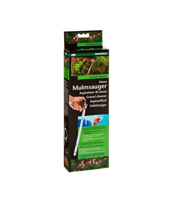 Der Nano Mulmsauger aus dem Hause DENNERLE ist für den Besitzer eines Nano-Aquariums ein guter Helfer bei der Aquarienpflege. Dank der integrierten Pumpe gelingt einfaches Ansaugen. Das schlanke Saugrohr ist optimal für das bepflanzte Aquarium geeignet. Außerdem wird das Aquarium-Zubehör mit einem praktischem Schlauchhalter und einem Durchflussregler geliefert.