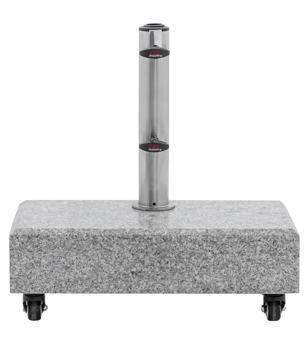 Sie wollen sich einen effektiven Sonnenschutz für Ihren Balkon zulegen und suchen dafür noch nach einem hochwertigen Schirmständer? Dann wird Ihnen dieses Exemplar der Marke Doppler sehr gefallen! Der robuste Ständer sorgt dafür, dass Ihr Sonnenschirm immer einen stabilen Halt hat und Sie ihn an dem Ort Ihrer Wahl aufstellen können. Dabei helfen Ihnen auch die Rollen an seiner Unterseite, mit denen sich der Sonnenschutz nach Ihren Vorstellungen versetzen lässt. Der schicke Granitstein verleiht dem Schirmständer eine besonders edle und kostbare Note, die nicht nur Ihnen, sondern auch Ihren Gästen auffallen wird. Laden Sie diese doch gleich zum Kaffeetrinken auf dem Balkon ein und genießen Sie die Sonnenstunden im Freien!