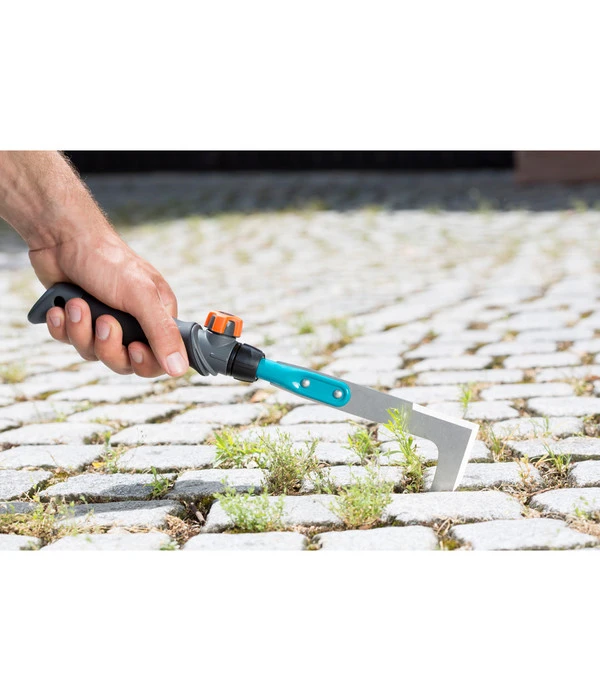 Bereits bei der ersten Inaugenscheinnahme wird der innovative GARDENA combisystem-Fugenkratzer Sie begeistern. Sein Design ist zeitgemäß, ausgewogen und ansprechend. Durch seinen speziellen, ergonomisch geformten und rutschsicheren Griff liegt er fantastisch in der Hand und gewährleistet einen erstklassigen Arbeitskomfort. Entfernen Sie spielend selbst hartnäckig verwurzeltes Unkraut in Ihrem Außenbereich, Garten oder Ihrer Einfahrt. Nach Bedarf können Sie den Handgriff durch einen combisystem-Stiel aus dem Sortiment von GARDENA austauschen. So können Sie in einer bequemen und rückenschonenden Haltung auch im Stehen arbeiten. Den GARDENA combisystem-Fugenkratzer können Sie platzsparend aufbewahren, zur Sicherheit ist im Lieferumfang ein effektiver Messerschutz enthalten. Vom Hersteller GARDENA erhalten Sie 25 Jahre Garantie auf Ihren Fugenkratzer.