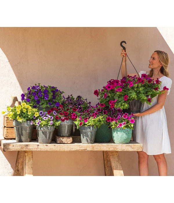 Die Petunie stammt ursprünglich aus Südamerika und hat aus ihrer Heimat das Bedürfnis nach Wärme und Sonne mit in unsere Breiten gebracht. Geben Sie der Südamerikanerin auf jeden Fall einen sonnigen Standort, dann wird sie sich mit üppigem Wachstum und spektakulärer Blütenfülle bedanken. Vor allem, wenn Sie die Hängepetunie auch vor Wind und Regen schützen können. Ein idealer Standort für diese bezaubernde Hängeblume ist neben dem Balkonkasten auch eine Hängeampel. Und wenn Sie diese unter das Dach Ihrer nach Süden ausgerichteten Terrasse oder Ihres Südbalkons hängen, wird die Hängepetunie ‚Night Sky‘ alle an sie gestellten Erwartungen erfüllen.