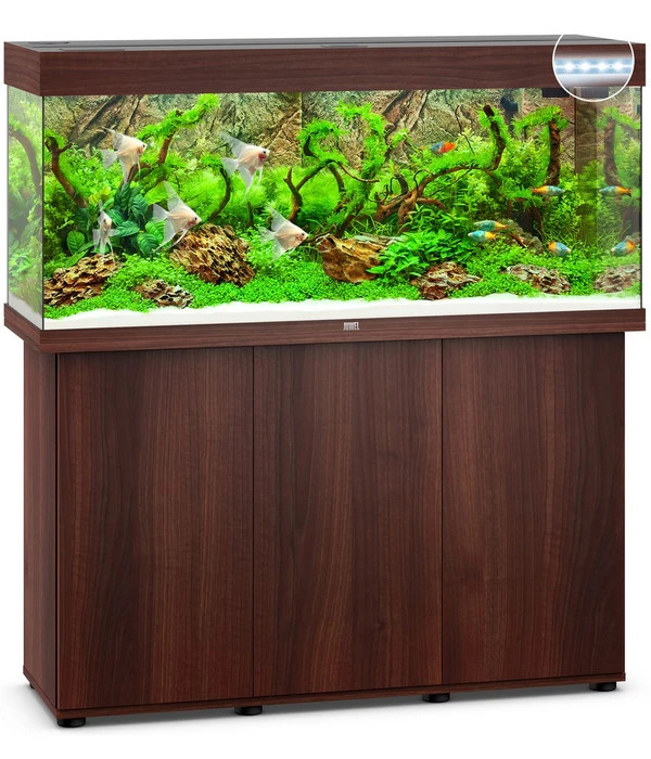 Mit der JUWEL® AQUARIUM Kombination Rio 240 LED holen Sie sich ein beliebtes Aquarium mit ausgereifter Technik und passendem Schrank zu sich Nachhause. Die klassisch, rechteckige Form der JUWEL® AQUARIUM Kombination Rio 240 LED im eleganten Design passt sich jedem Wohnstil an und dank des Fassungsvermögens von 240 Litern können Sie sich somit eine einzigartige Unterwasserlandschaft zaubern. Damit Sie sich um nichts mehr kümmern müssen, sind passender neben dem Schrank auch Filter, Heizer und LED-Beleuchtung im Lieferumfang gleich mit dabei. Die JUWEL® AQUARIUM Kombination Rio 240 LED ist mit einer MultiLux LED 120 Einsatzleuchte für optimales Lichtspektrum ausgestattet, mit der Sie eine Energieersparnis von 50 % haben.
