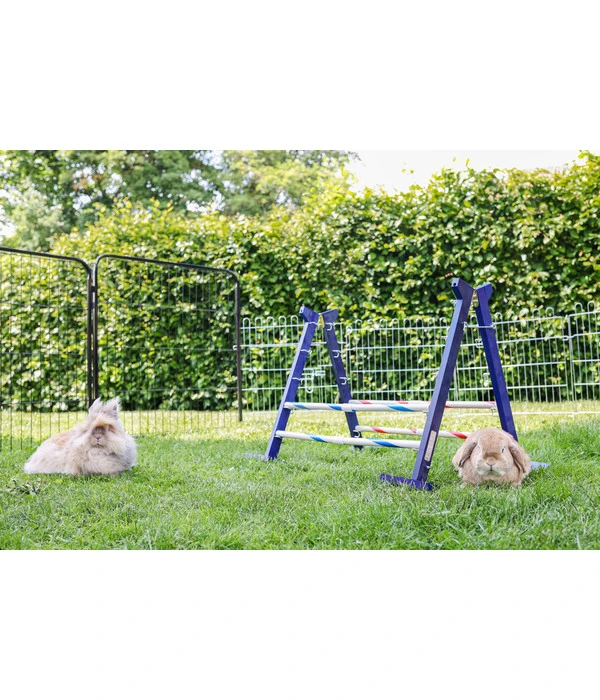 Egal, ob Sie und Ihr Kaninchen bereits zu den alten Hasen bei Agility zählen oder erstmals den Sprung in diesen Sport wagen, das KERBL Agility Nagerspielzeug Kombisprung bietet für jeden etwas. Die Holzständer sorgen für sicheren Stand, und sowohl Sprunghöhe als auch Sprungweite können individuell an die Bedürfnisse und das Können Ihres Kleintieres angepasst werden. Das Training hält Ihren Liebling gesund und fit. Holen Sie mit dem KERBL Agility Nagerspielzeug Kombisprung das Extra an Vitalität und Abwechslung in das Leben Ihres Nagers!
