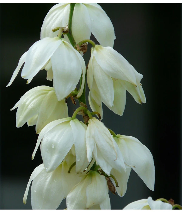 Ursprünglich aus den südöstlichen USA stammend gehört die Kerzen-Palmlilie zu den in unseren Gärten gern gesehenen Prachtstauden. Bekannt ist die Palmlilie, die auch im Kübel gedeiht, jedoch für ihren beeindruckenden Blütenstand. Er arbeitet sich im Juli kraftvoll wie ein großer Spargelsprössling bis zu 120 cm empor, um dann in luftiger Höhe seine cremeweiße Blütenpracht zu präsentieren. Wie porzellanartige Glöckchen prangen sie dort und ziehen alle Blicke auf sich. Das palmenartige Blattwerk der Kerzen-Palmlilie bildet eine Art wehrhaftes Blatt-Nest um den Blütenstand herum. Jeder, der schon einmal Bekanntschaft mit den Blattspitzen machen durfte, kann dies bestätigen. Die Palmlilie bildet über die Jahre mehrere kräftige Stämme aus, die sich mehrfach weiter verzweigen. Stirbt die Blüte später ab, wächst auch der blütentragende Stamm weiter und verzweigt sich mehrfach. Die exotisch wirkende Pflanze begeistert nicht nur mit ihrer Blütenpracht, sondern auch im Winter mit immergrünem Blattwerk.