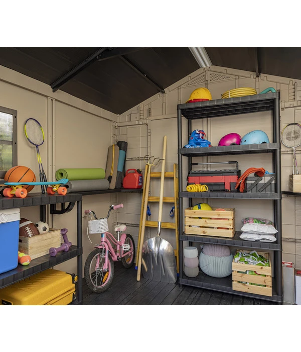 Tepro Kunststoffgerätehaus Factor: Aufbewahrungsmöglichkeit und Arbeitsraum zugleich