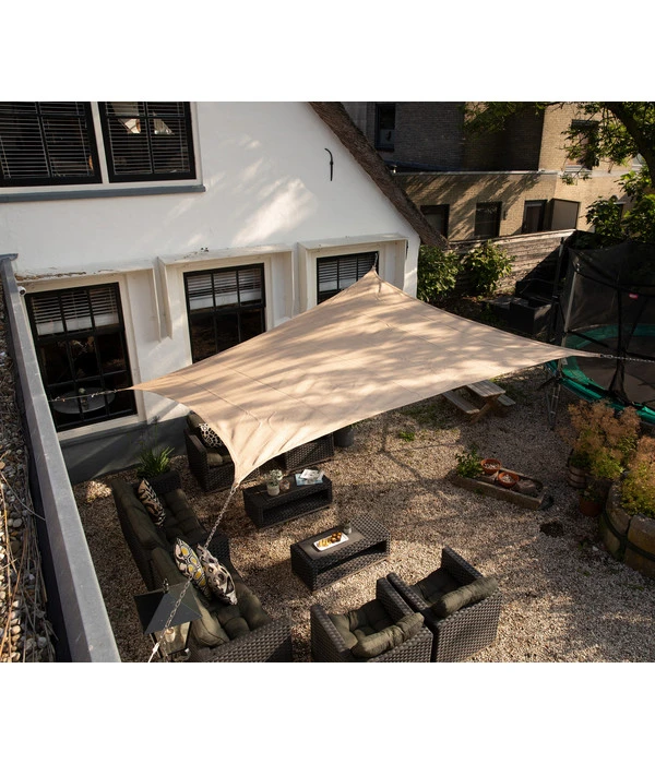 Um das Sonnensegel Coolfit Quadrat aus dem Hause Nesling sturmsicher zu montieren, benötigen Sie nur pro Ecke des quadratischen Schattenspenders einen stabilen Fixpunkt. Diesen verbinden Sie mithilfe eines geeigneten Seils mit den eingenähten Befestigungsösen. Und in der Herbst- und Wintersaison packen Sie das Sonnensegel einfach in die mitgelieferte Aufbewahrungstasche und freuen sich auf das nächste Frühjahr. Eine eventuelle Reinigung ist mit wenig warmem Wasser, einer weichen Bürste und etwas Seifenlauge möglich. Also warten Sie nicht lange, sondern bestellen Sie sich das Nesling Sonnensegel Coolfit Quadrat!