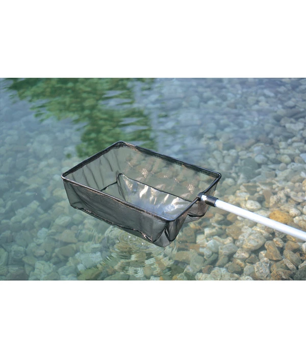 Damit Ihr Teich demnächst frei von Verunreinigungen aller Art ist, sollten Sie am besten den praktischen Oase Algenkescher aus unserem gut sortierten Shop verwenden. Mit ihm fällt Ihnen die Reinigung mit Sicherheit ganz leicht. Der Kescher in rechteckiger Form ist äußerst handlich und noch dazu robust verarbeitet. Dank seines langen Griffs kommen Sie ohne Probleme an alle Ecken Ihres Teichs, ohne dass Sie sich zu nah ans Wasser begeben müssen. Der Griff des Keschers ist aus robustem Aluminium gefertigt. Das macht ihn zu einem echten Leichtgewicht. Aus diesem Grund sind auch längere Arbeiten mit dem Oase Algenkescher möglich.
