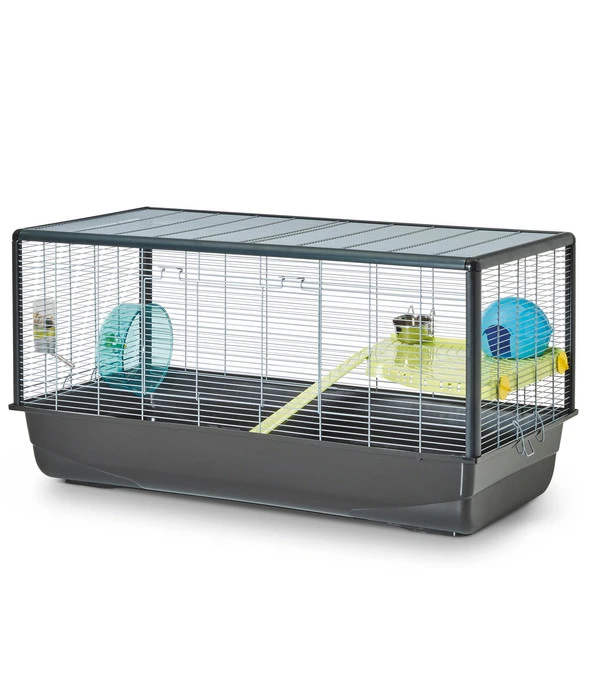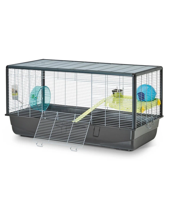 So ein Zuhause kann sich jeder Hamster nur wünschen! Das SAVIC Nagerheim Plaza für Hamster hat alles, was ein richtig guter Hamsterkäfig braucht: viel Platz und eine Menge Zubehör, nämlich eine kleine Eck-Etage, ein Laufrad, eine 150 ml Trinkflasche, eine Futterschale, ein Häuschen und eine Leiter.