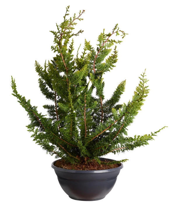 Seltenes Nadelgehölz oder prächtiger Farn? Hier hatte eine Pflanze wohl Spaß daran, für ein wenig Verwirrung zu sorgen! Denn jeder, der den locker aufrechten Wuchs und die farnwedelartigen Zweige der Scheinzypresse ‘Teddy Bear‘ entdeckt, wird sich erstaunt fragen, um welche Art von Pflanze es sich wohl handelt. Und auch Sie werden erleben, wie sich Nachbarn vorsichtig nach dem interessanten Neuankömmling in Ihrem Garten erkundigen, der durch sein exotisches Aussehen sofort die Blicke auf sich lenkt. Doch die Scheinzypresse ‘Teddy Bear‘ weiß sich mit noch mehr positiven Eigenschaften in Ihr Gärtnerherz zu schmeicheln. So begnügt sie sich zum Beispiel mit einer moderaten Wuchsgeschwindigkeit, so dass sie erst in einigen Jahren ihre maximale Größe von 100-150 cm erreichen wird. Und sie wächst nicht nur auf Ihren Beeten, sondern gedeiht auch als Kübelpflanze hervorragend. Nutzen Sie gleich die vielfältigen Einsatzmöglichkeiten dieses Ziergehölzes und genießen Sie es, wie Ihr neues Schmuckstück zum Gesprächsstoff in der Nachbarschaft wird!
