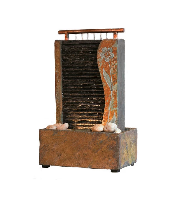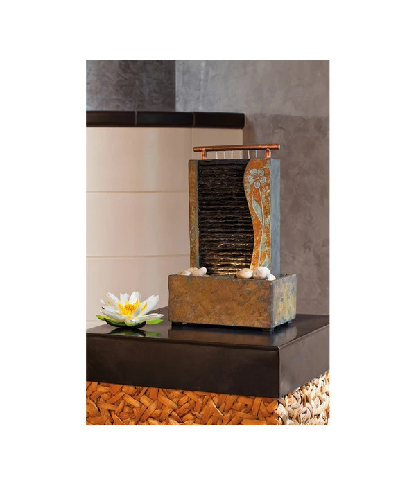 Der attraktive Zimmerbrunnen Guo von Seliger wurde für zahlreiche Einstellmöglichkeiten vorgesehen. Sie können, neben dem kompletten Ausschalten aller Funktionen, wählen, ob Sie nur die Pumpe ohne die Beleuchtung benutzen wollen oder beides gleichzeitig eingeschaltet haben möchten. So entscheiden Sie ganz nach Ihrer Stimmung, in welcher Art das Ambiente des Brunnens Ihre Räumlichkeiten ergänzen soll. Für einen besonderen Reiz sorgt auch die liebevoll dargestellte, von Hand eingeschliffene, Blume. Bestellen Sie den in einer für alle Räumlichkeiten überaus attraktiven Größe erscheinenden Seliger Zimmerbrunnen Guo noch heute. Um so schneller erfreuen Sie sich an seinem romantischen Flair.