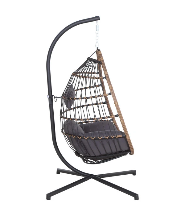 Der Siena Garden Salerno Hängekorb ist ein Kunstwerk aus Gardino®-Geflecht in Royal Oak, das Ihnen stabile Sicherheit bietet und mit seinem lockeren Flechtmuster gleichzeitig für luftige Leichtigkeit sorgt. Das elegant geschwungene Stahlgestell hält sich optisch zurück und sorgt quasi aus dem Hintergrund für den festen Stand. Eine Stahlkette mit Feder verbindet den Korb absolut sicher mit dem Gestell und unterstützt dabei das Schwebegefühl. Die zusätzliche Sicherheitsleine wiederum sorgt dafür, dass Sie es beim Schaukeln nicht übertreiben können.