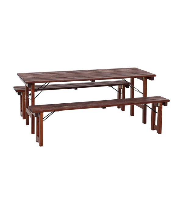 Mit einer Sitzgarnitur Wallis können Sie außerdem angenehm flexibel bleiben. Denn Tisch wie Bänke lassen sich absolut platzsparend zusammenklappen und auf diese Weise mit wenigen Handgriffen beiseite räumen, wenn Sie den Platz auf der Terrasse gerade anderweitig benötigen. Gleiches gilt, wenn Sie die Möbel den Winter über im Gartenhäuschen unterstellen wollen. Und es macht auch einen Ortswechsel ganz einfach.