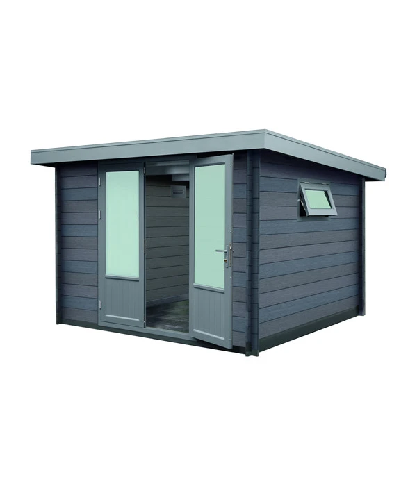 Bestimmt hat Sie das Wolff Finnhaus Gartenhaus WPC-Trend C mit seiner attraktiven Optik begeistert, die durch die schlichte Bauweise zustande kommt: ein kubischer Baukörper, gekrönt von einem modernen Pultdach. Perfekt dazu passend sind die Doppeltür aus wetterfestem Aluminium und das kleine Fenster an der Seite. Wie oben bereits beschrieben, verleiht der Kontrast aus der holzartigen Oberflächenstruktur und dem grauen WPC dem Gartendomizil seine individuelle Ausstrahlung, die durch Details wie die unterste Wandbohle und die Dachblende aus Aluminium auf elegante Weise abgerundet wird. Ein attraktiver Blickfang für Ihr Gartenambiente!