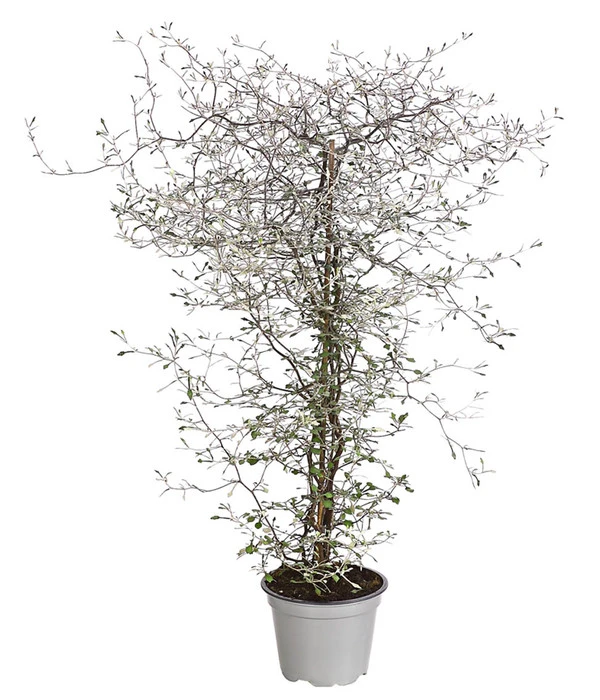 Dieser Zierstrauch wird bei Ihren Nachbarn für neugierige Blicke sorgen, denn so ein bizarres Kunstwerk der Natur kann bestimmt nicht in vielen Gärten Ihrer Nachbarschaft bewundert werden. Der in Neuseeland beheimatete Zickzackstrauch gehört zur Familie der Steinbrechgewächse und verdankt seinen Namen der eigenartigen Wuchsform mit den extrem verwinkelten Ästen und Zweigen an dem sonst aufrecht wachsenden Strauch. Die silbergrünen Blätter sind eher klein und unauffällig, die jungen Triebe sowie die Blattunterseiten weißfilzig behaart. In den Monaten April bis Juni erscheinen an dem immergrünen Strauch gelbe Blüten, die einen angenehmen, intensiven Duft verströmen und aus denen sich später im Jahr orangefarbene oder rote Beeren entwickeln.
