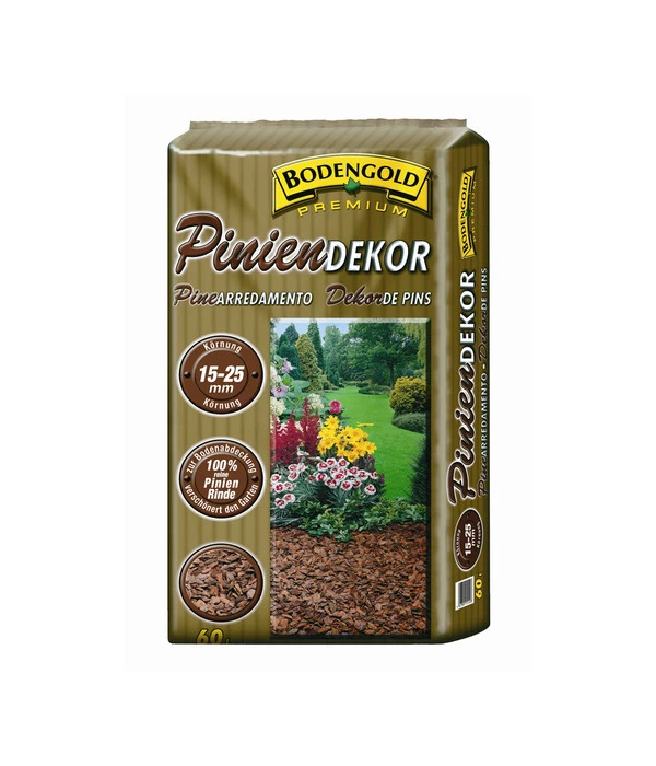 Sie können Ziegler Bodengold Piniendekor als naturnahe Bodenabdeckung im Ziergarten unter Stauden, Bäumen und Sträuchern einsetzen, es wirkt aber auch in Pflanzkästen und Blumenkübeln mit Hochstämmchen sehr attraktiv. Doch man mulcht den Boden nicht nur aus optischen Gründen, sonst es ist aktive Bodenpflege. Bodengold Premium Piniendekor gleicht zu hohe Temperatuten aus und hält die Feuchtigkeit im Boden. Außerdem schützt die Mulchschicht die Bodenorganismen vor der Witterung, so dass sie fleißig neuen Boden herstellen können. Und natürlich wird sich auch das Unkraut schwer tun, aus einer Mulchschicht aus Bodengold Premium Piniendekor zu wachsen. Noch ein Profi-Tipp zum Mulchen: Bevor Sie Bodengold Premium Piniendekor auf Ihren Beeten verteilen, sollten Sie sehr hartnäckige Unkräuter wie Giersch oder Quecke so gut wie möglich entfernen. Wenn Sie die Mulchdecke aus Bodengold Premium Piniendekor hauptsächlich als Unkrautschutz verwenden möchte, sollte die Schicht ca. 7-10 cm dick sein. Wenn sich dann im Laufe der Zeit Bodengold Premium Piniendekor langsam zersetzt und einzelne Unkräuter durchwachsen, diese einfach auszupfen und die Decke mit Bodengold Premium Piniendekor ergänzen oder erneuern.